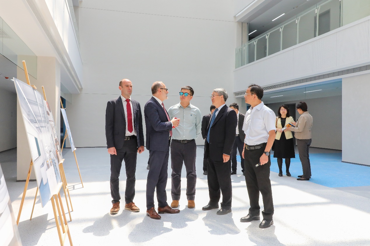 校园建设指挥部副总指挥项小兵向外宾详细介绍了校园设计理念、规划方案和建设进展,弗提亚都校长一行先后参观了图书馆、生活组团、教研组团和体育馆,并对现代化、国际化的美丽校园表示由衷赞赏。