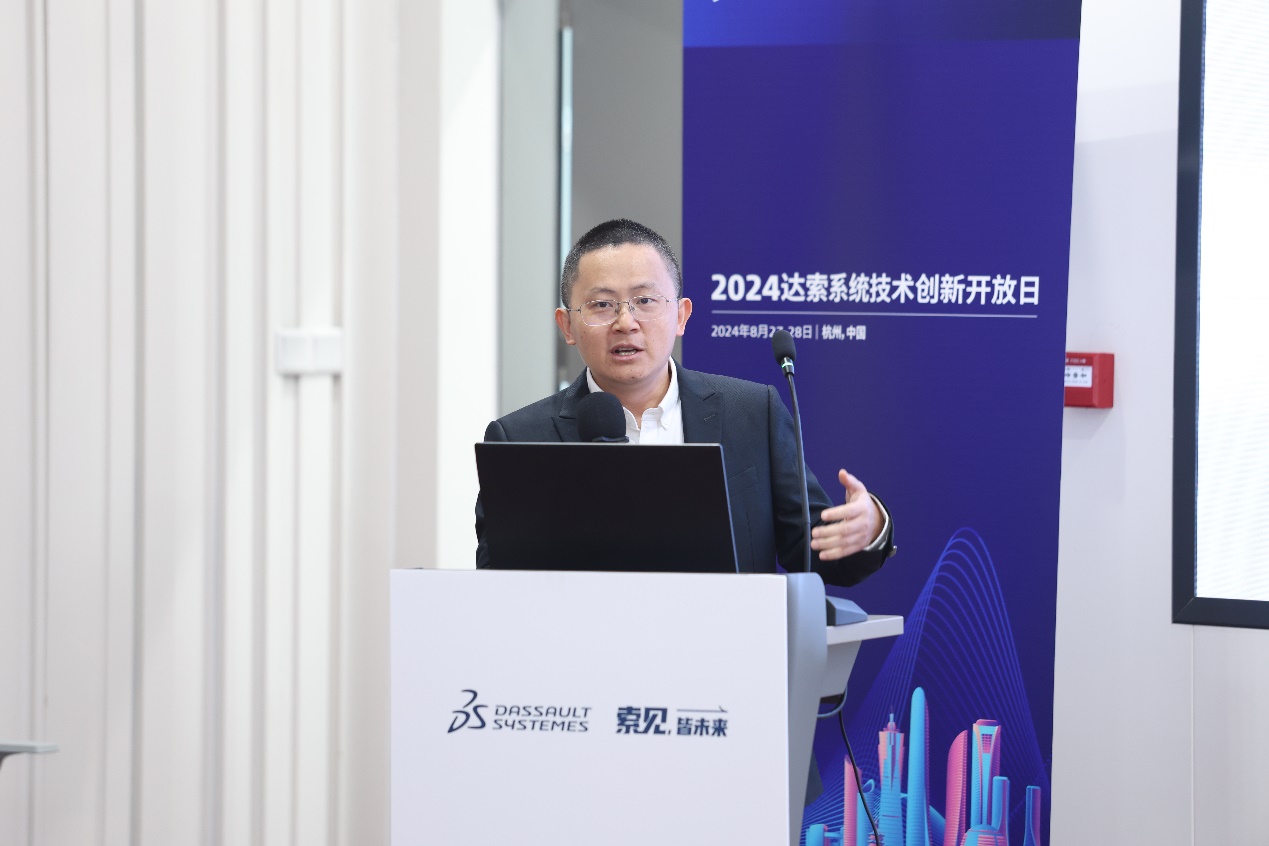达索系统CATIA品牌工程高级技术经理唐欣欣介绍了CATIA在设计研发领域的创新技术,展示了基于AI的自动化设计和可持续发展设计方案。