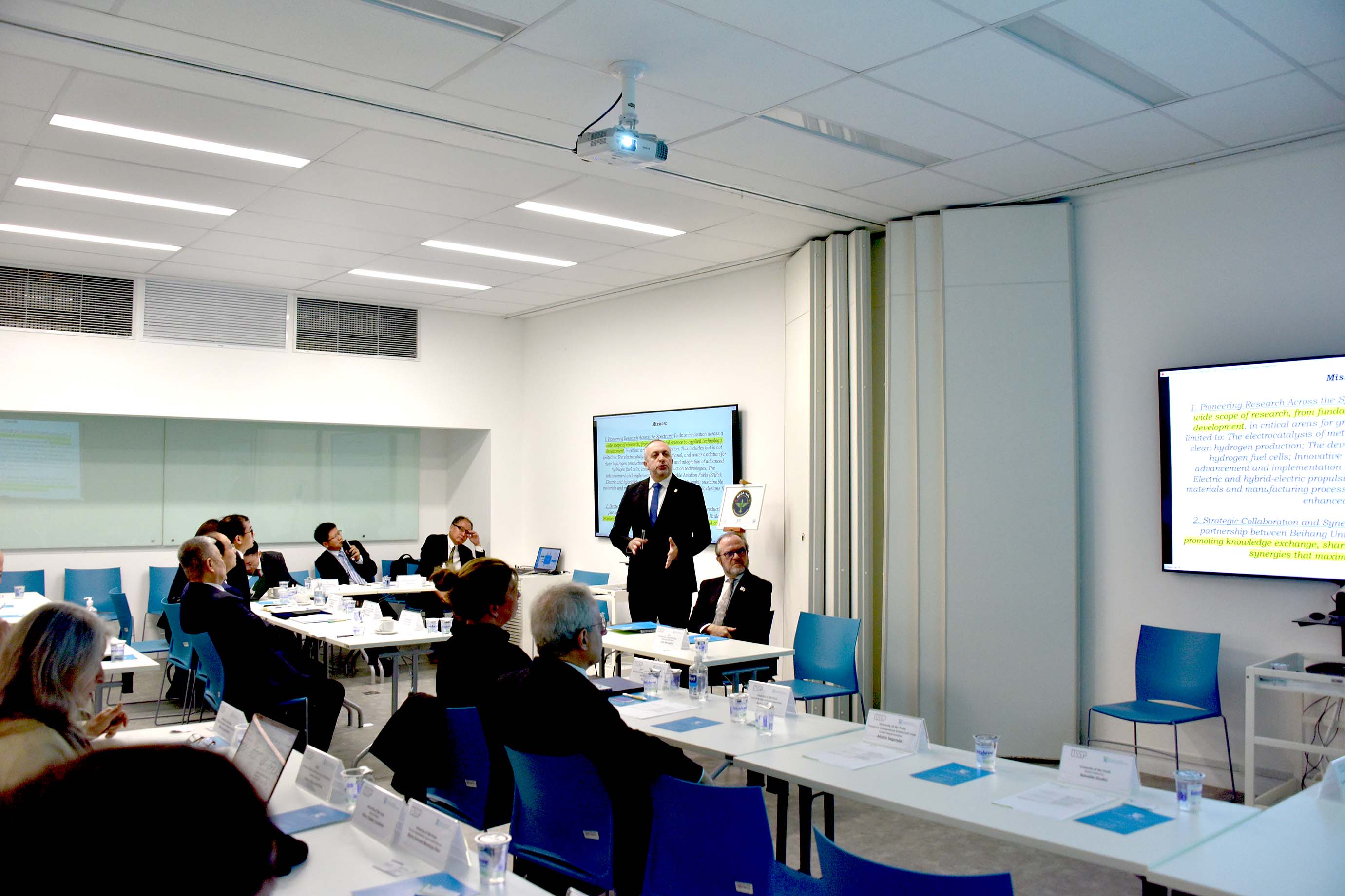 随后,赵长禄书记与胡里奥·梅内吉尼院士为BUGA Lab实验室揭牌。此外,双方共同举办了中巴第一届绿色航空研讨会(The 1st Brazil-China Workshop on Green Aviation),两校30余位专家围绕绿色能源、民用航空、数理科学等领域展开深入交流。