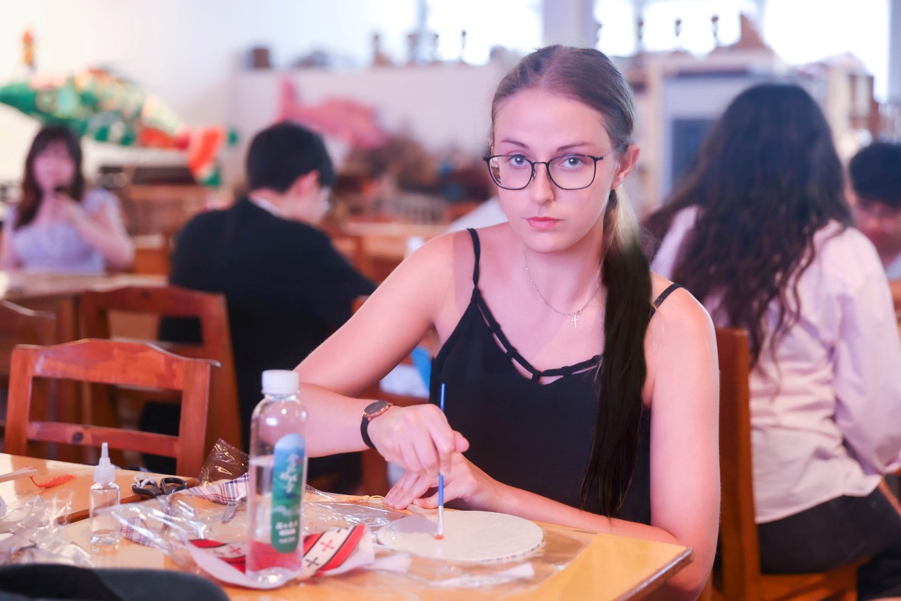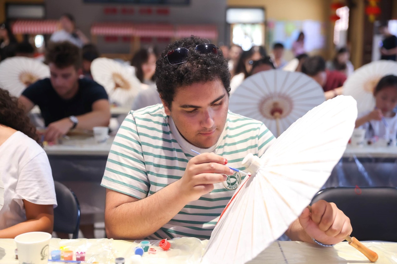 在纸伞工坊,非遗传承人揭示了这项始创于清乾隆年间技艺的奥秘。其核心在于七十余道繁复工序,从精选三年生淡竹制骨,到糊制手工桑皮纸伞面,再到七遍桐油涂刷防水定型。学员们在素白伞面上进行创作,中国传统的梅、蝶、熊猫与充满个性的卡通形象跃然伞上,完成了一次跨文化的艺术对话。
