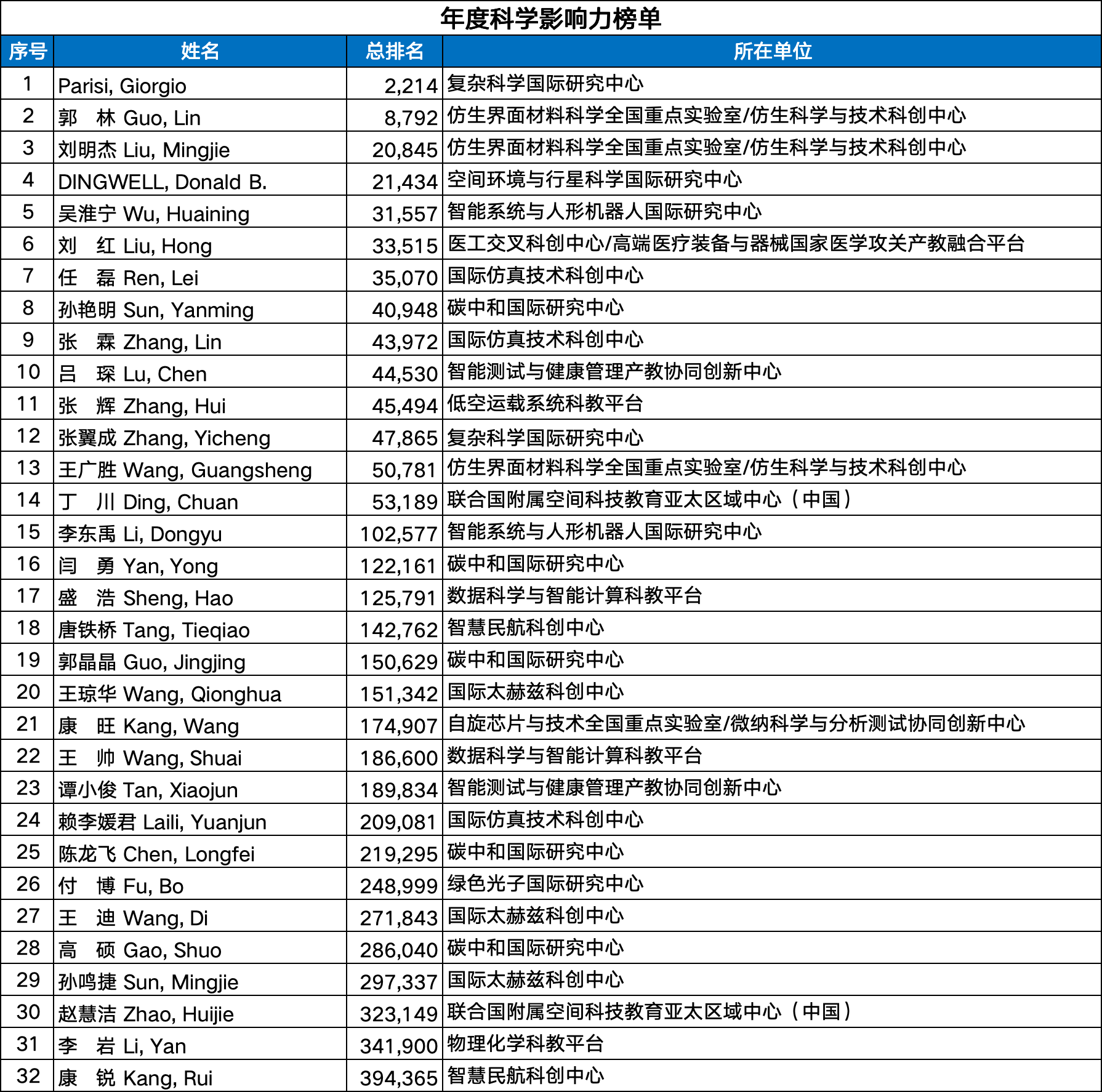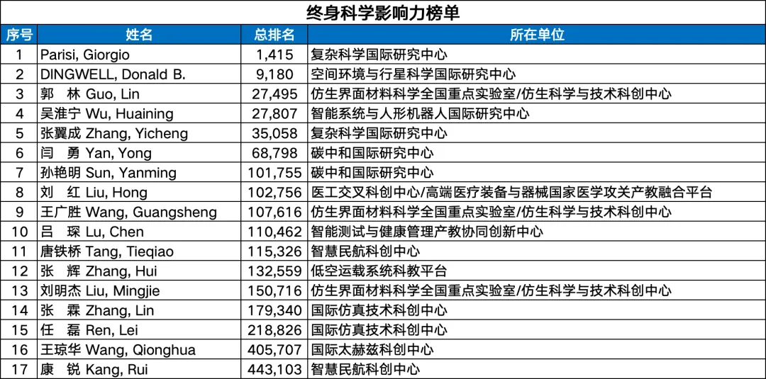近日,美国斯坦福大学和爱思唯尔数据库发布《全球前2%顶尖科学家榜单2025》(Stanford University Top 2% Scientists List 2025),该榜单包括“终身科学影响力榜单”(Career-long impact)和“年度科学影响力榜单”(Single-year impact)。北航国新院共有32名学者入选,其中有17名学者在“终身科学影响力榜单”和“年度科学影响力榜单”上双双入选。