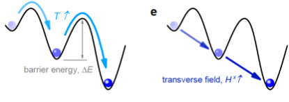 △ 经典退火(左)和量子退火(右)示意图