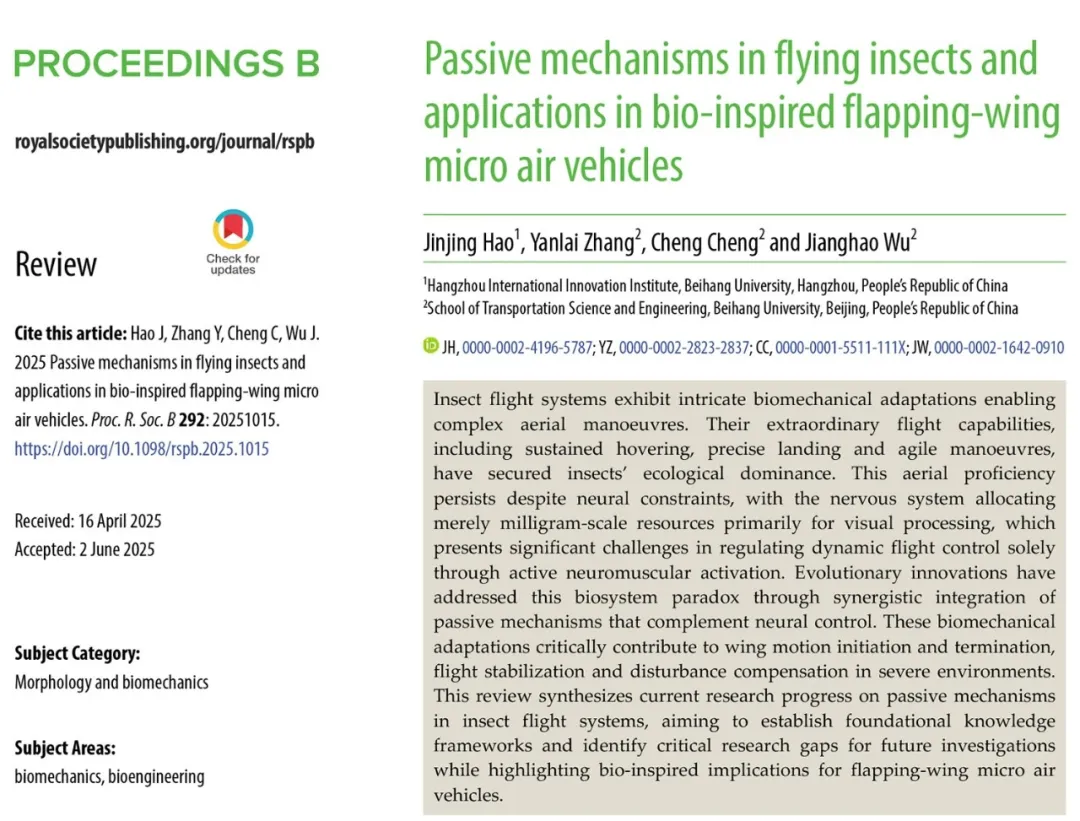 近日,北京欧美大片ppt免费大全研究团队在《皇家学会会报B辑》发表了题为“Passive mechanisms in flying insects and applications in bio-inspired flapping-wing micro air vehicles”的综述论文,该研究系统梳理了昆虫飞行系统中被动机制的研究进展,阐释了仿生原理如何启发工程设计,提出了昆虫飞行力学的关键未解之谜,为新一代微型飞行机器人的研发提供了重要思路。