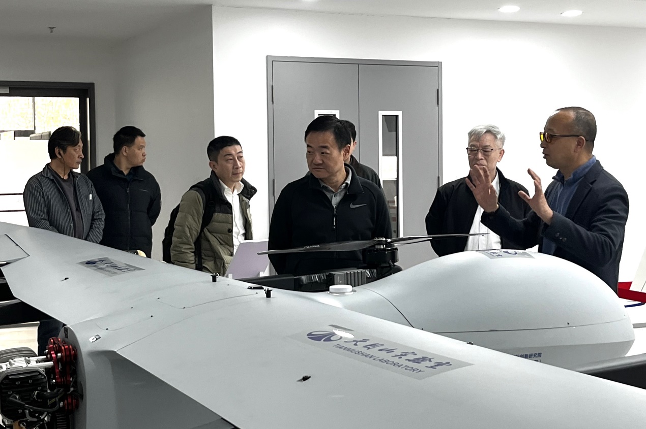 陈暘秘书长一行参观了天目山实验室展厅及低空运载启航港,听取了天目山实验室在低空运载装备领域的创新技术。马朝利书记重点介绍了“天目山X号”系列飞行器的多样化应用场景,展现了天目山实验室在低空智能运载领域的技术引领力。