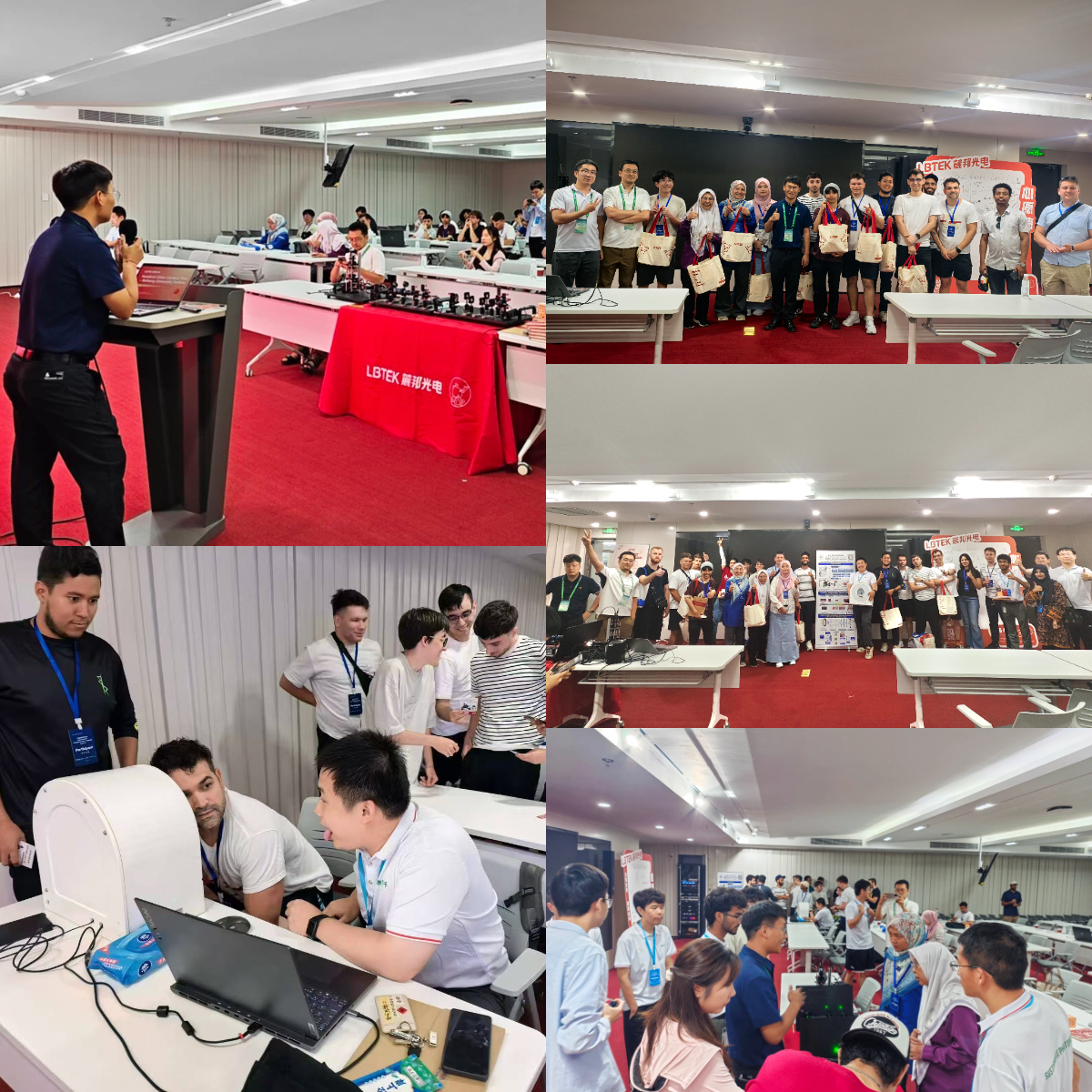 为促进光学理论与工程实践的深度融合,暑期学校还邀请了国内光电行业领军企业LBTEK麓邦光电开展专题教学活动。在光学互动课堂中,学员们系统学习了光学元件设计原理与产业应用知识,课堂氛围积极而富有探索性。器件实操环节重点演示了DOE分束系统、DOE匀化系统和柯勒照明系统等专业设备,学员们通过亲手调试,深入理解了光学器件结构与工作原理。趣味互动环节设置了“光子心愿墙”“光学套圈”等寓教于乐的游戏项目,在轻松的氛围中有效激发了学员的学习兴趣与参与热情。现场还特别展出了北航仪器科学与光电工程学院杨照华教授量子成像探测与智能感知技术实验室研发的"谱康感知"智能光谱舌诊仪。该设备创新性地融合了计算高光谱成像、深度学习与AI大模型技术,实现了中医诊断的智能化与快速化,其精准、灵敏的检测性能吸引了众多学员亲身体验。本次实践活动通过"理论-实践-应用"的全流程设计,不仅拓宽了学员的行业视野,更生动呈现了光学技术从实验室研究到产业化落地的完整创新链条。