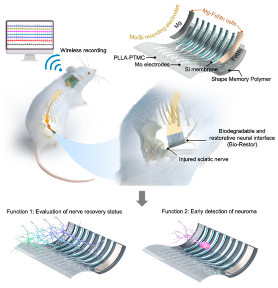 2月17日,北航国新院医工交叉科创中心首席科学家樊瑜波教授团队联合清华大学、中国人民解放军总医院在Nature Communications上发表了题为“神经病理性损伤修复和监测的生物可降解外周神经接口”(A biodegradable and restorative peripheral neural interface for the interrogation of neuropathic injuries)的研究论文,该研究开发了集成信号监测功能的可降解电刺激神经接口,首次实现对神经修复效果的实时动态监测,并验证其在神经瘤早期诊疗中的效果。樊瑜波教授为论文的共同通讯作者,北航国新院为第一完成单位。